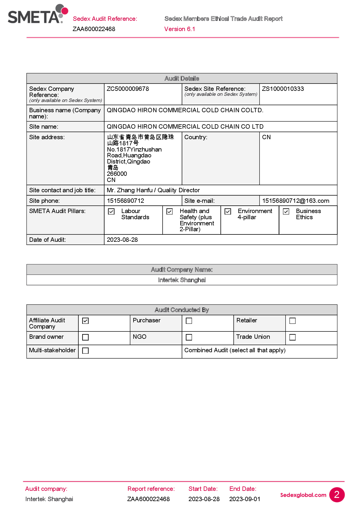 • SMETA-SEDEX认证报告